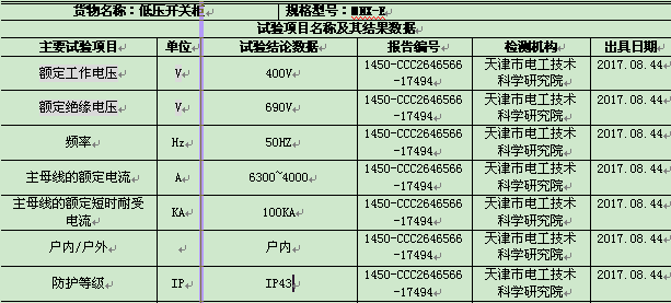 MNS-E 低壓配電箱(試驗報告)
